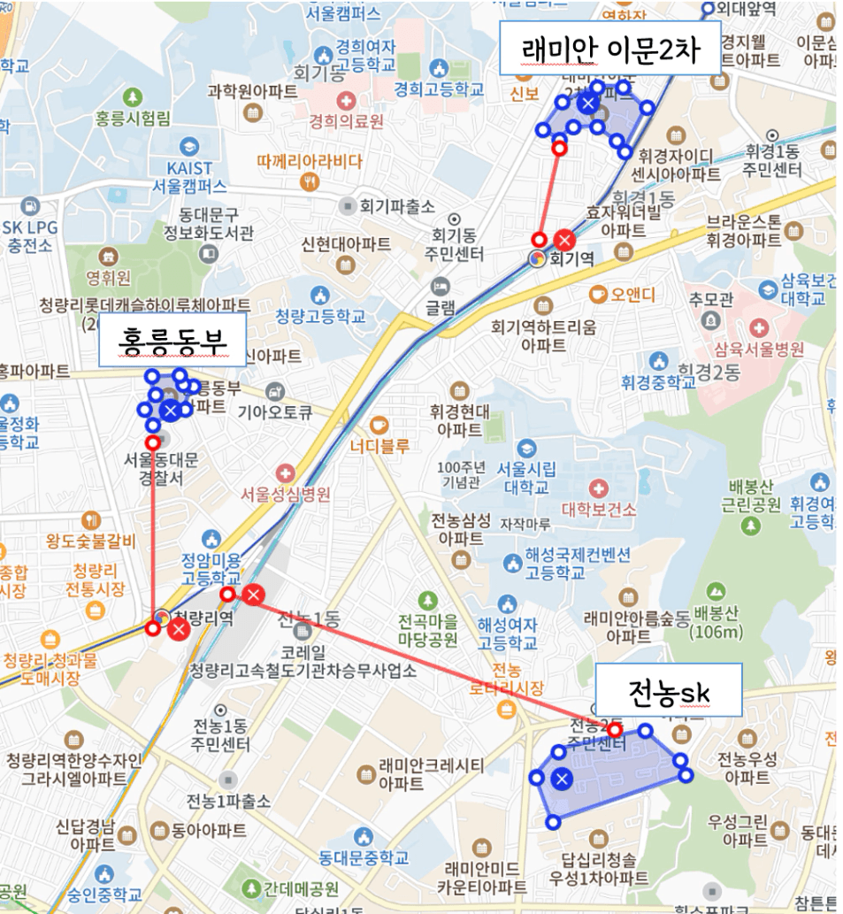 청량리역 도보 이용이 가능한 ①홍릉동부