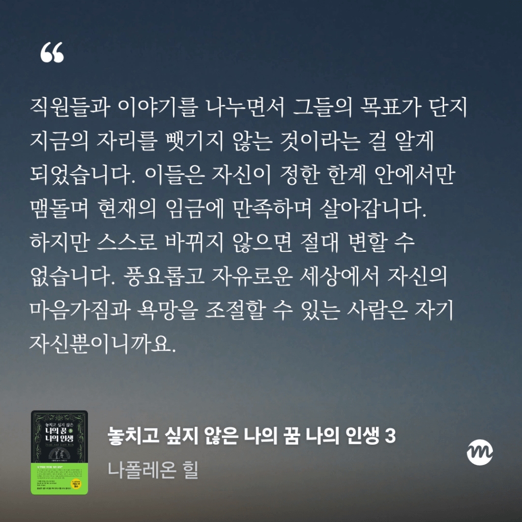 : 3권을 연속으로 읽으면서 내가 바라는 꿈에 대해 좀 더 생각해보게 되었다.