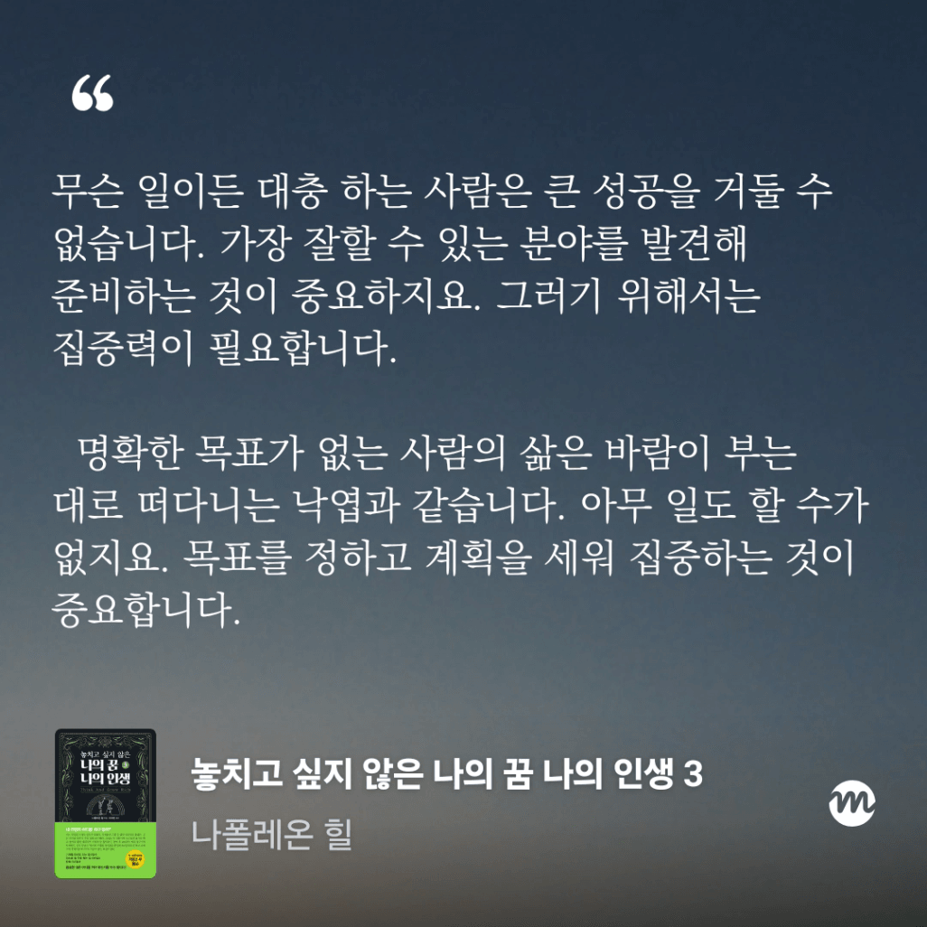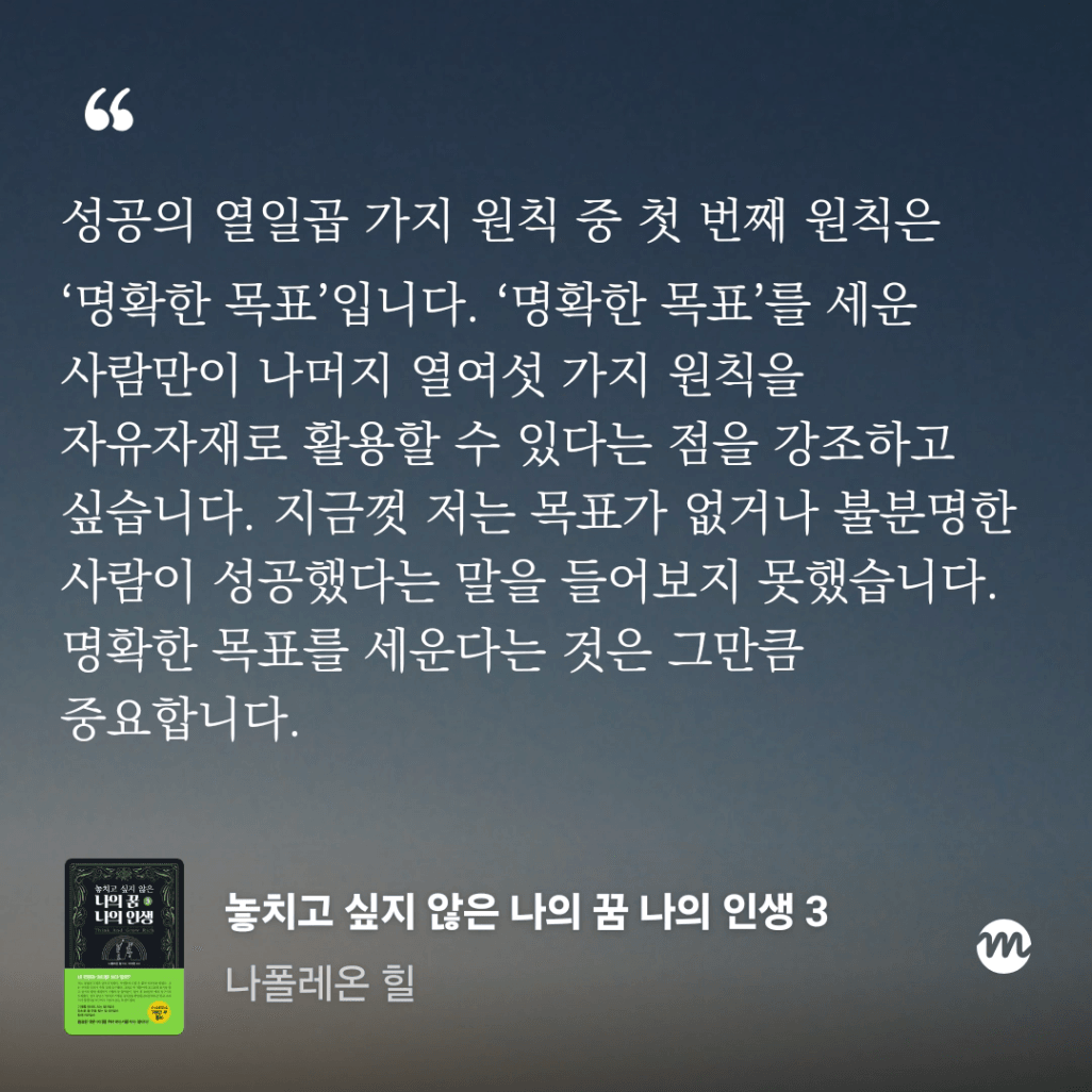 목표를 잃지 않음으로 결국엔 이루는 인생이 되었으면 좋겠다.