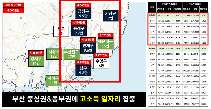 해운대에서도 고소득 일자리가 많이 밀집해있는
