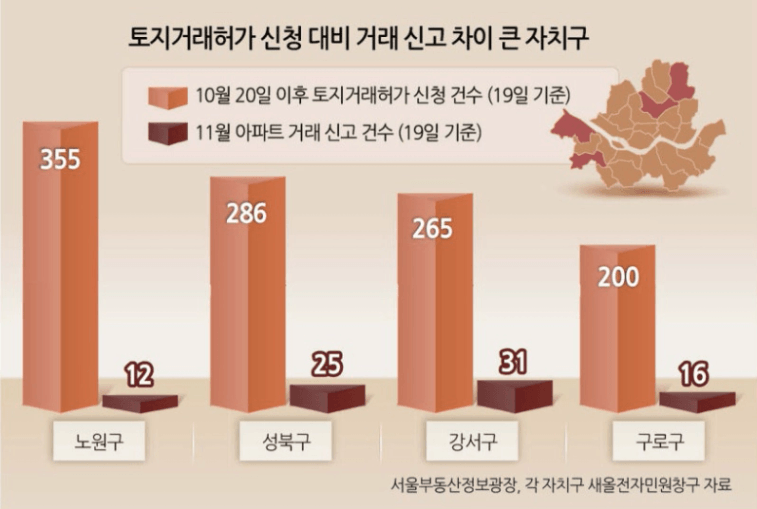 통계가 있지만 실제 서울 25개구에서 토지거래 허가를 대기하는 건수는