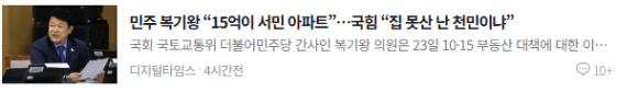 한 국회의원꼐서 15억정도는 서민 아파트라는