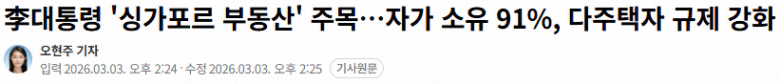 [집을's 시장 관찰일지] 2026.03.03 | 싱가포르 부동산 모델, 한국에 그대로 적용 가능할까?