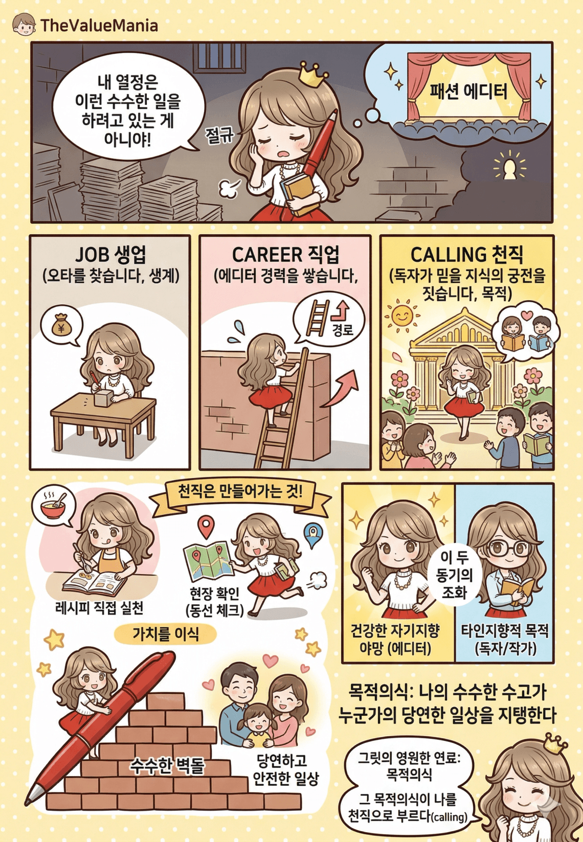 천직은 하늘이 내려주는 것이 아니라, 내가 나의 노동에 부여한 '의미'가 나를 부르는 소리(Calling)다.